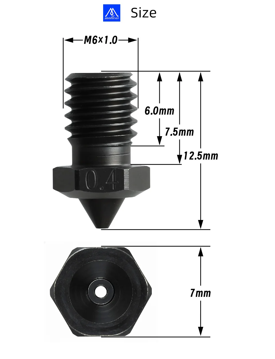 Mellow 1PCS Top Quality Sharp A2 Hardened Steel 2.85MM NF V6 Nozzles For Printing PEI PEEK Carbon Fiber Filament For E3D HOTEND