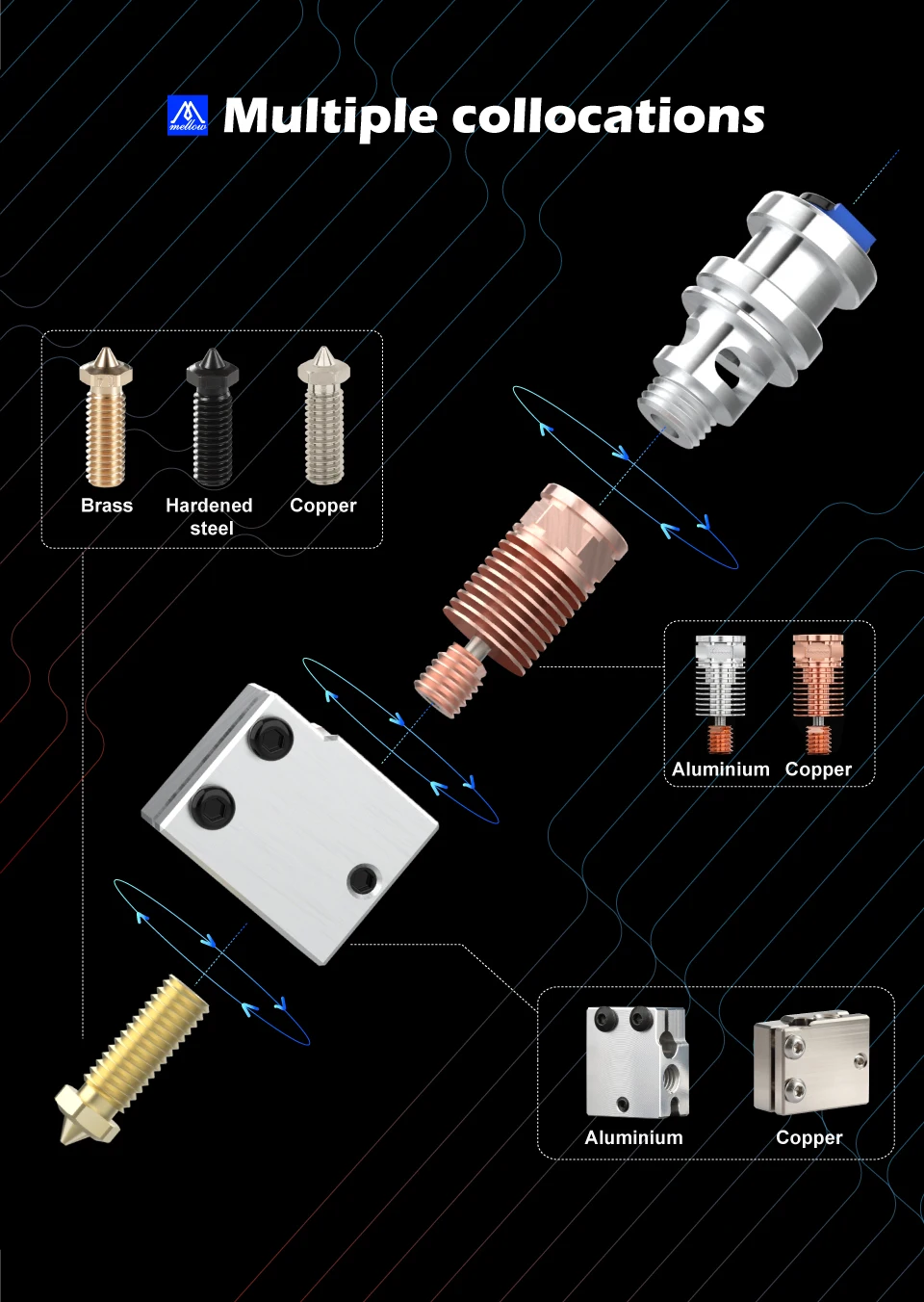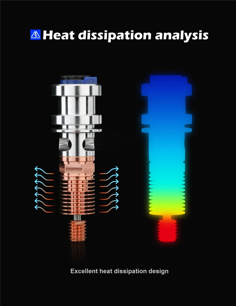 We recommend that two different material heat sinks can be selected for high temperature printing and low temperature printing to achieve the best Effect.