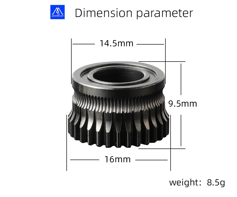 Mellow All Metal Hardened Steel Nickel-Plated/DLC Coated K1 Gear 1.75MM Filament Drive Gear For Creality K1/ K1C/K1 Max Extruder