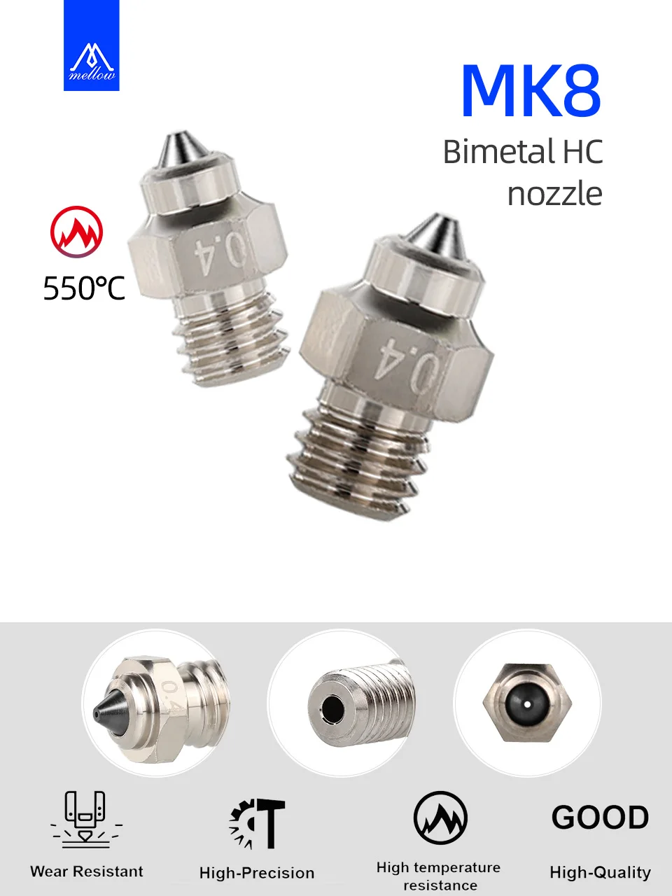 Mellow DLC MK8 nozzle High Temperature Wear 3D Printer nozzle Hardened Steel & Copper for cr10 hotend