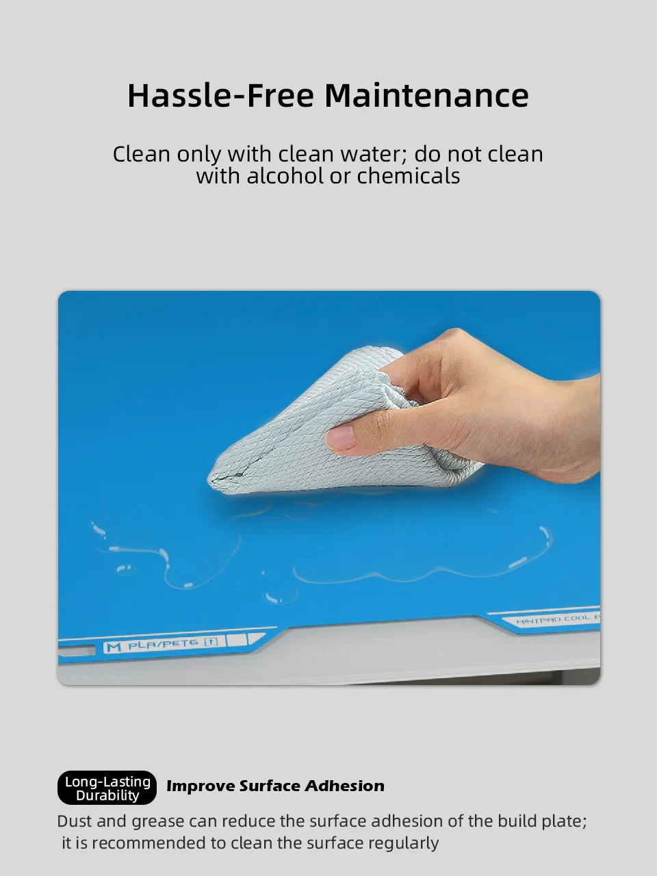 Flex Release Technology: Equipped with a side-mounted insulated handle, this feature allows for easy and safe removal of printed objects with just one hand.