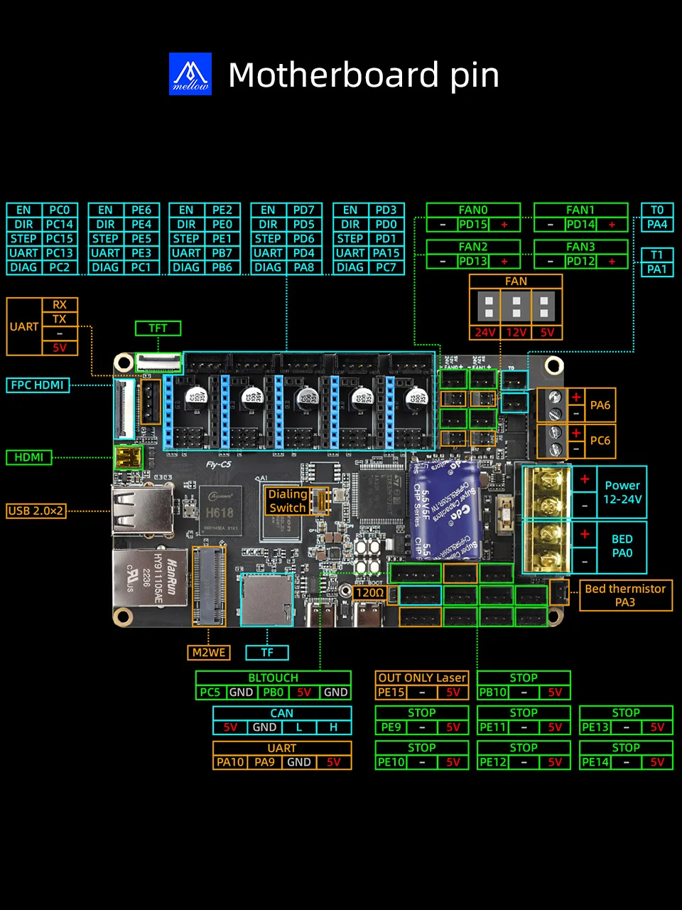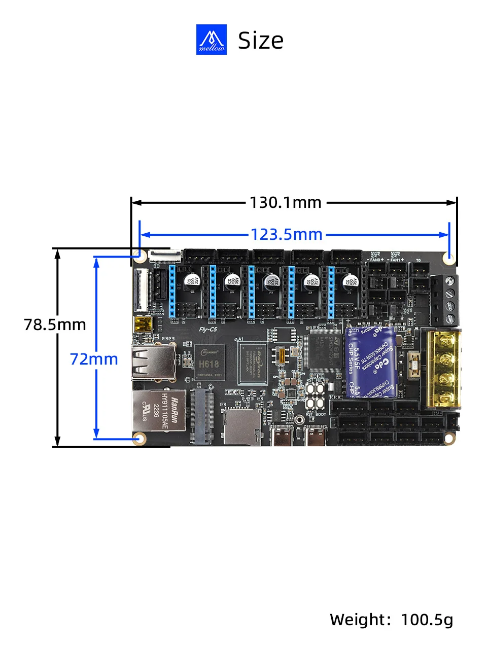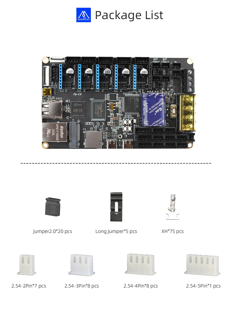 The FLY C5 3D printer mainboard is a high-performance, feature-rich control board designed for professionals and advanced users. Combining cutting-edge hardware and optimized software, it suits various 3D printer architectures, delivering smooth and efficient printing performance.