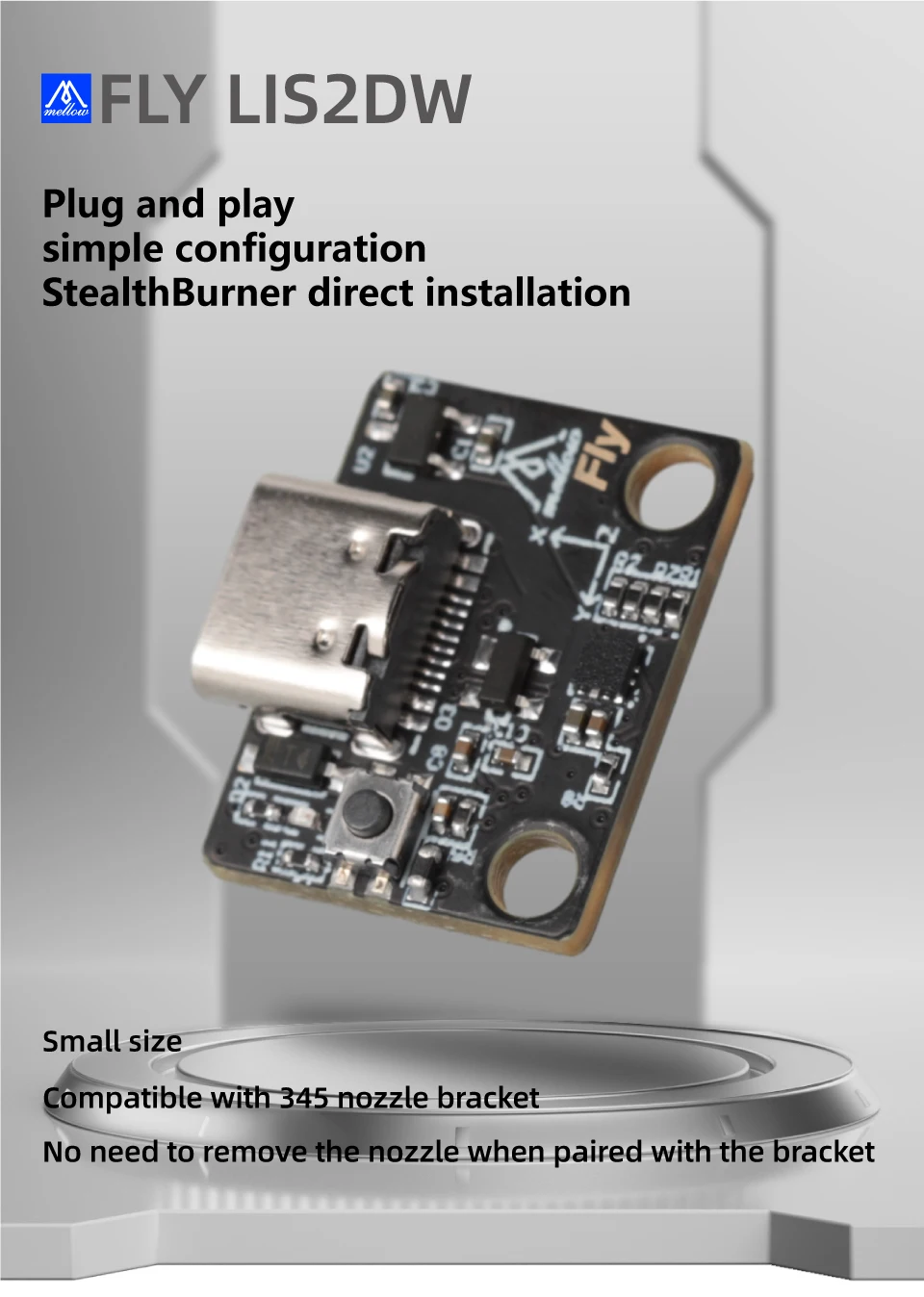 Mellow Fly-LIS2DW Accelerometer Board For Klipper Gemini Rspberry Pi Revo Hotend TZ2.0 K1 MK8 ADXL345 Bracket 3D Printer Parts