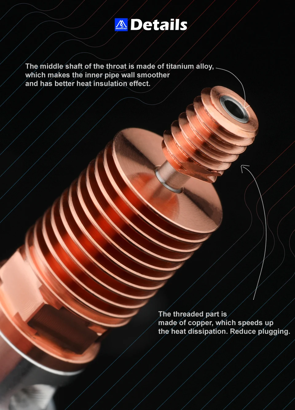 -The threaded part is made of copper, which speeds up the heat dissipation. Reduce plugging.