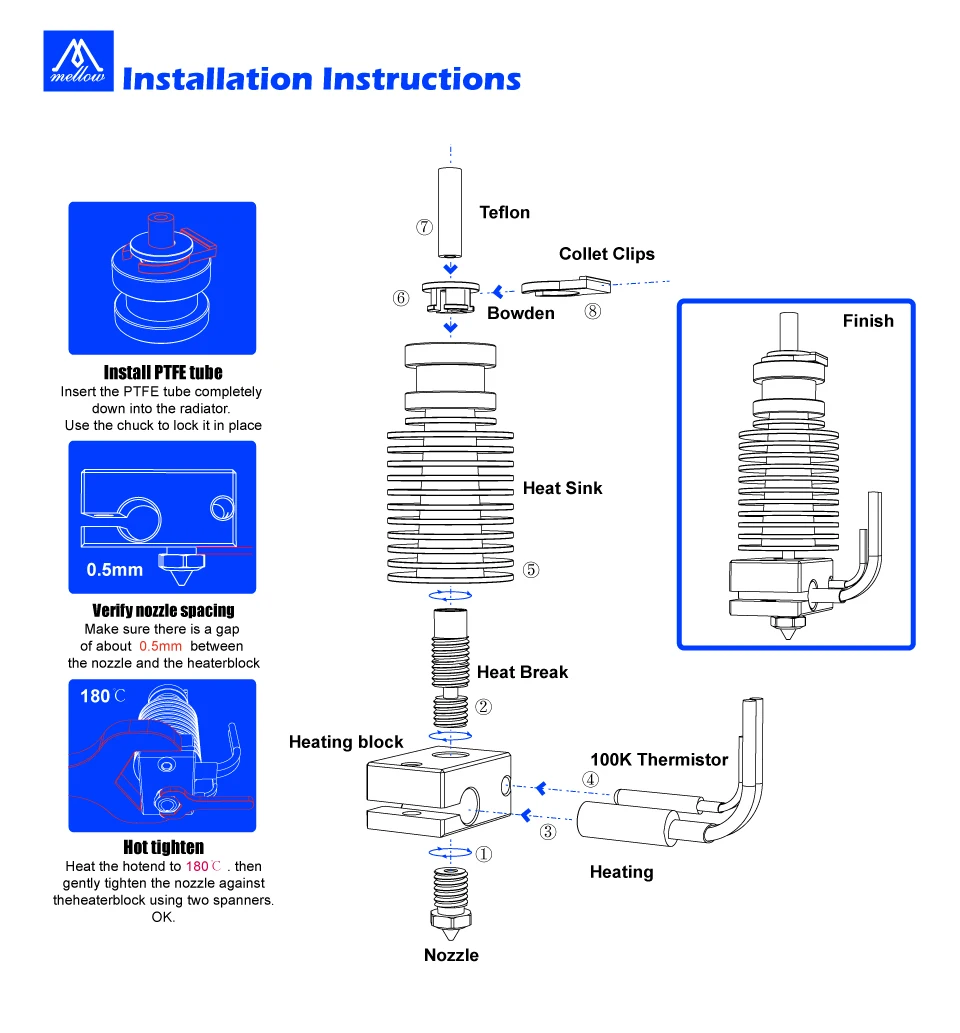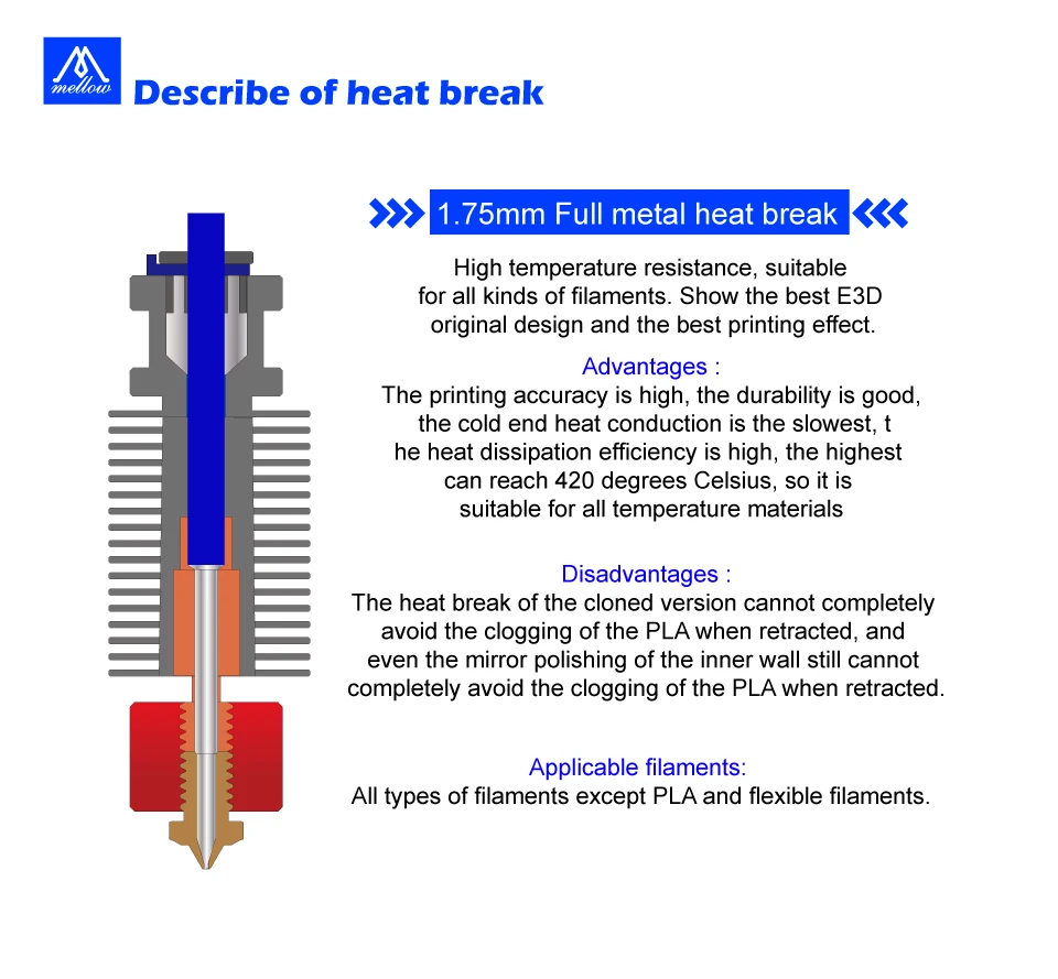 Mellow NF V6 Crazy Heat Break Copper & Stainless Steel 3D Printer parts Nozzle Throat For 1.75mm V6 HOTEND Heater Block
