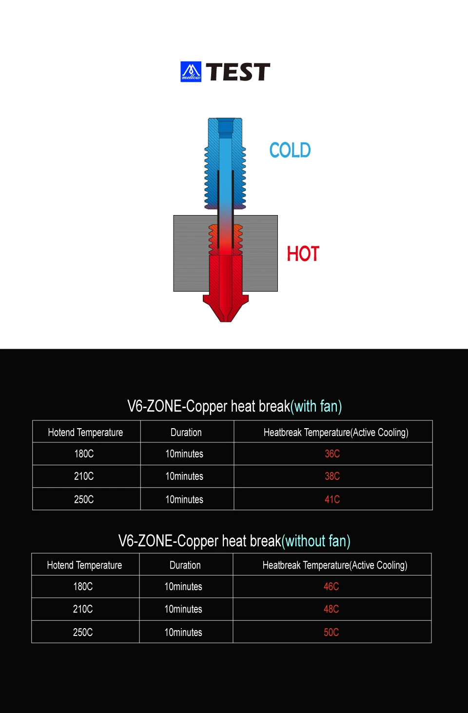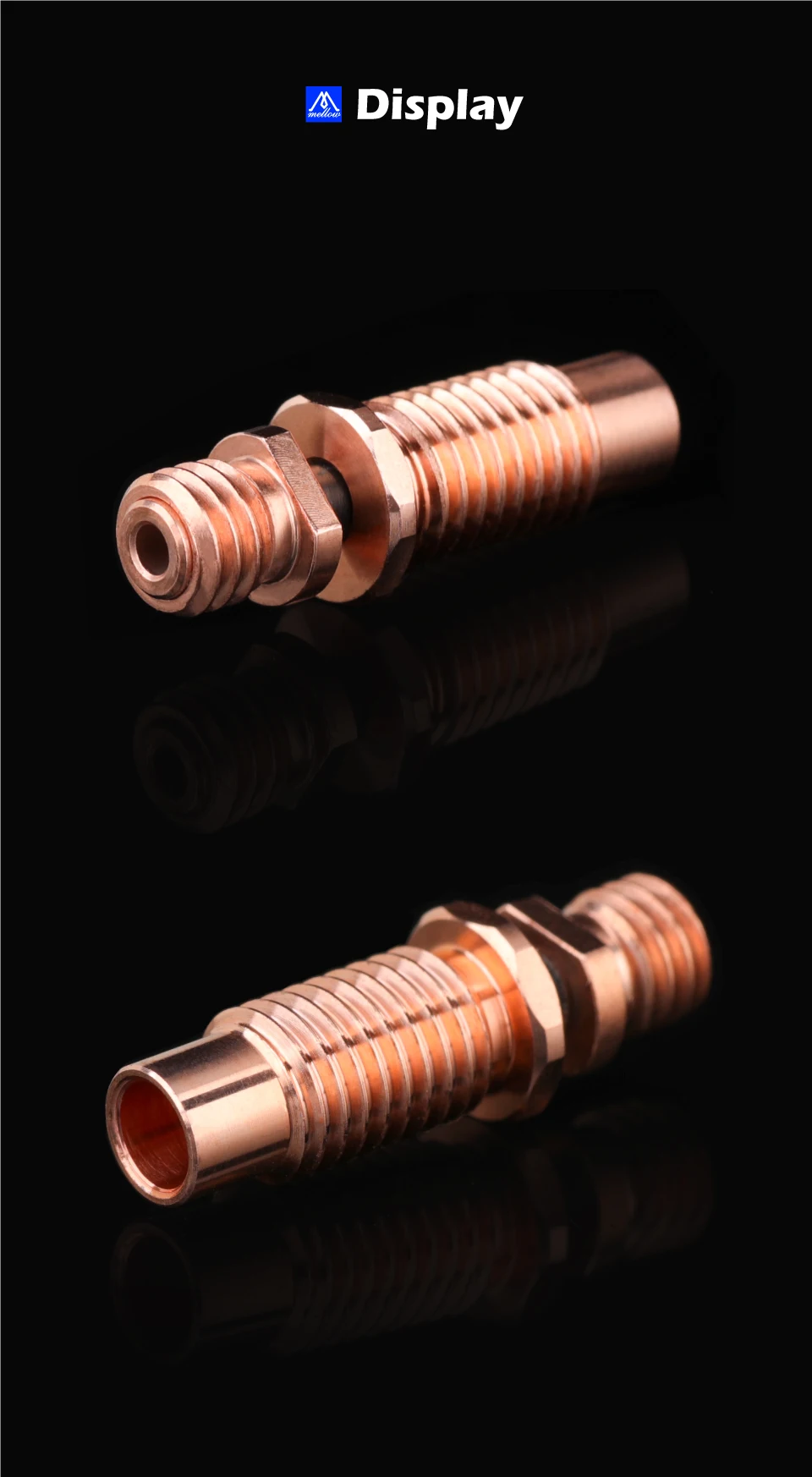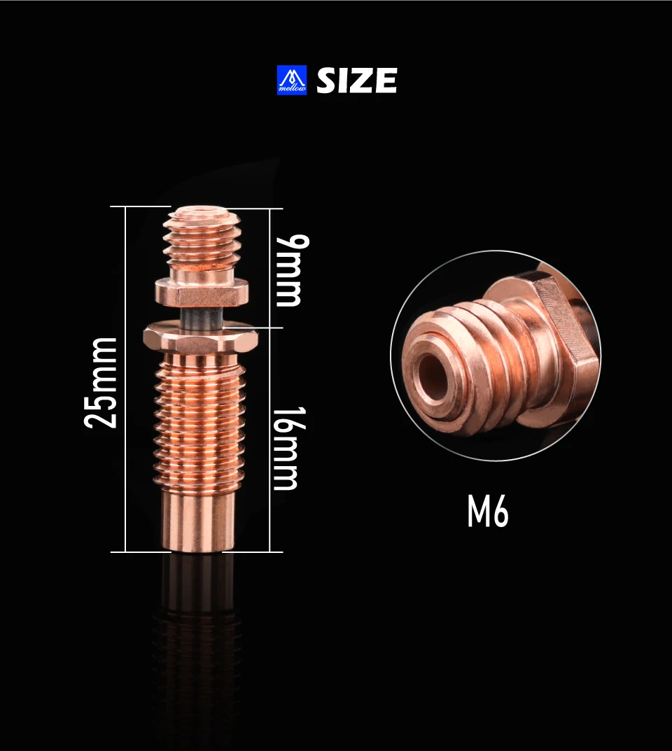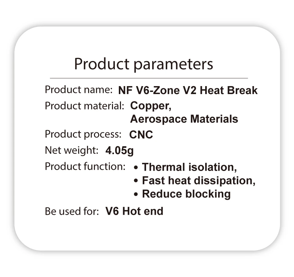 Combination of copper metal and aerospace materials to make a heat break is better than the original thermal barrier performance and improve print quality. The printing effect exceeds the bimetal heat break, making it easier to print PLA, ABS, PETG, PA, FLEX, etc.