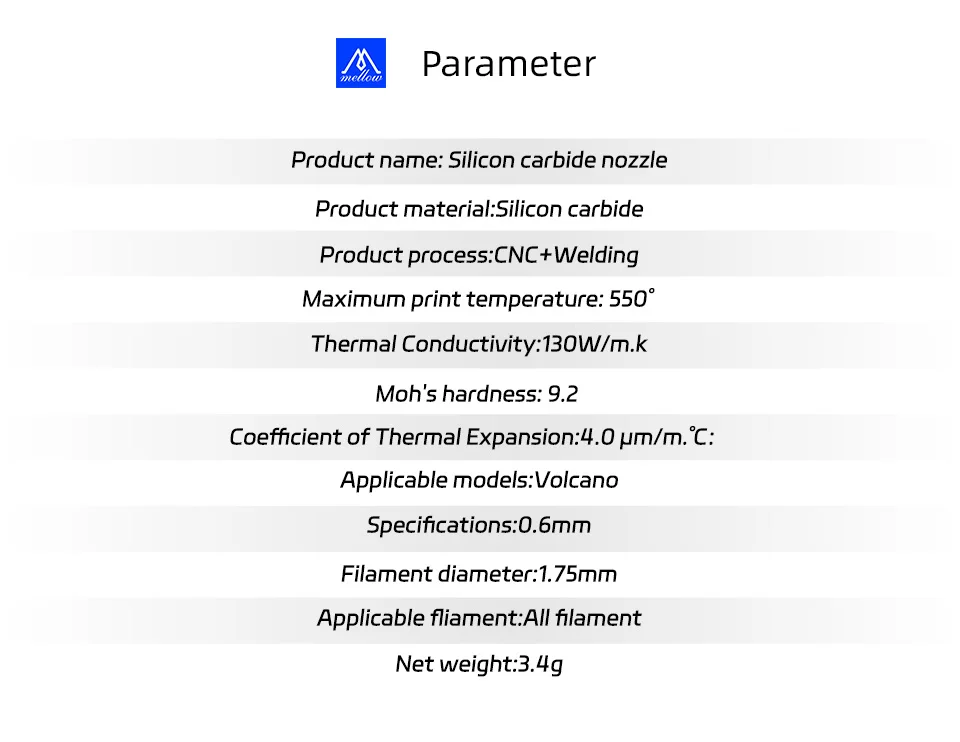 Friction coefficient is only 0.05, effectively avoiding molten plastic sticking to the nozzle;