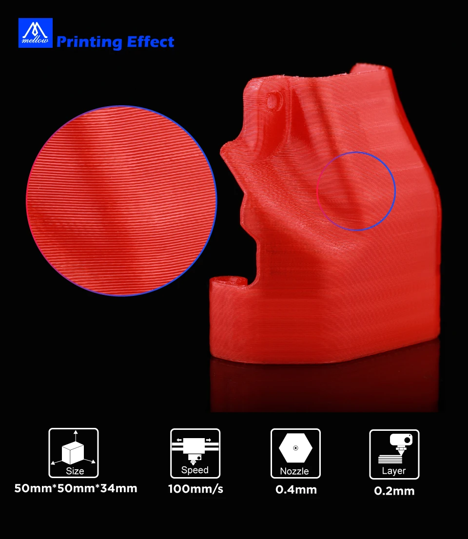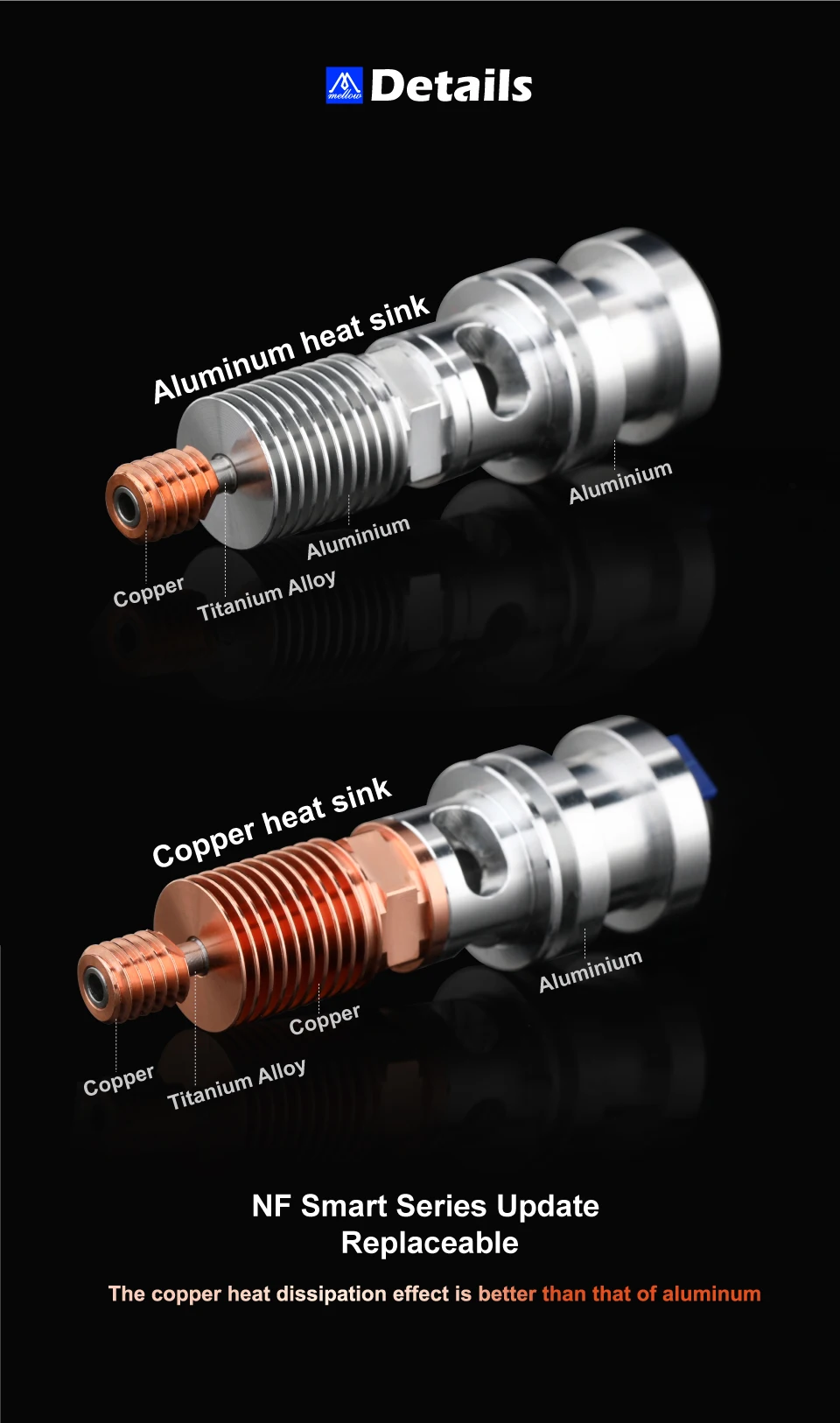 We recommend that two different material heat sinks can be selected for high temperature printing and low temperature printing to achieve the best Effect.