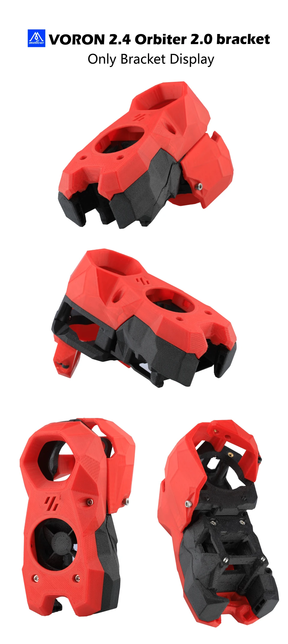 In order to meet the Voron 3D printer users' requirements for high-quality products, we made the Orbiter Extruder for Stealthburner printing brackets. The red part is ABS, and the black part is PET-carbon fiber, ensuring that there is no problem in high temperature environments. , at the same time we provide a screw package, you don't need to worry about the lack of screws.