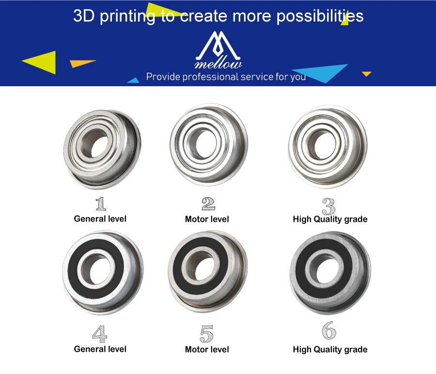 Mellow 10Pcs F695-2RS Bearing 5*13*4 mm Flanged Bushing F695 RS Ball Bearings F695RS For VORON Mobius 2/3 3D Printer