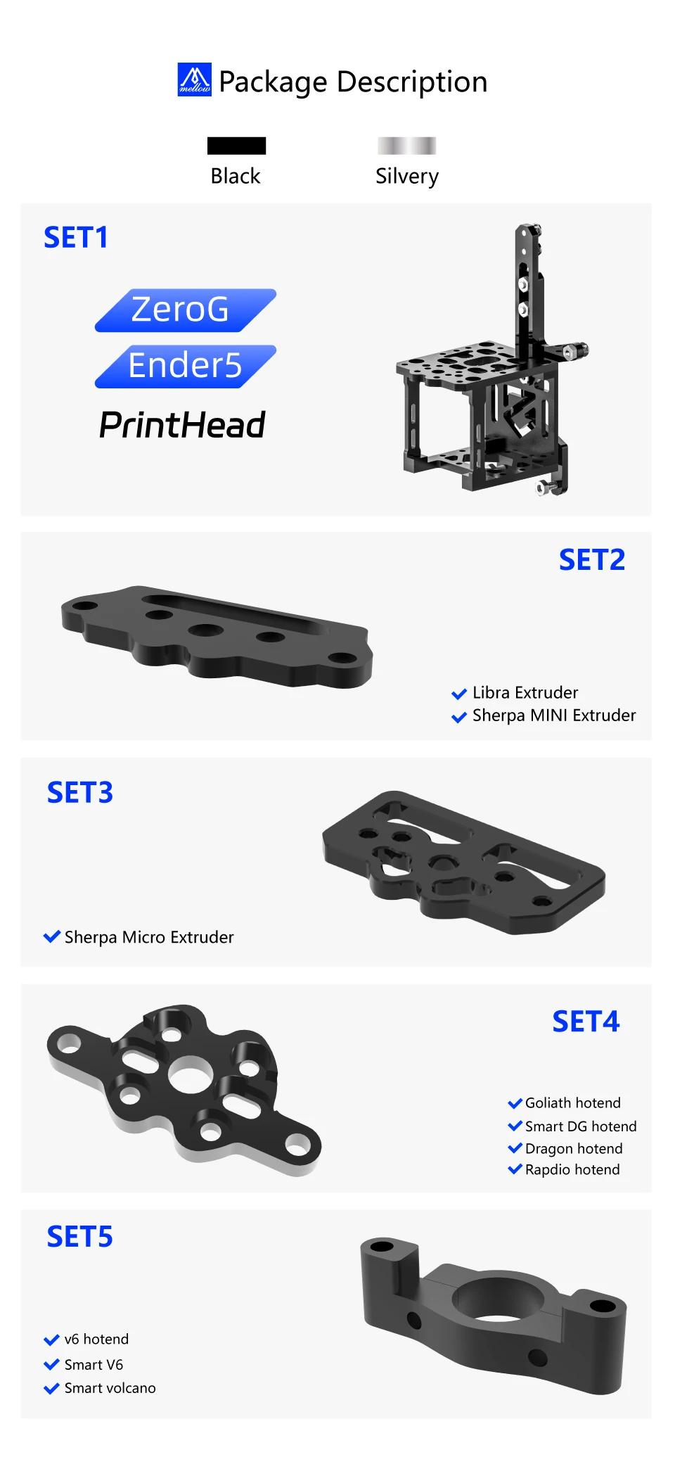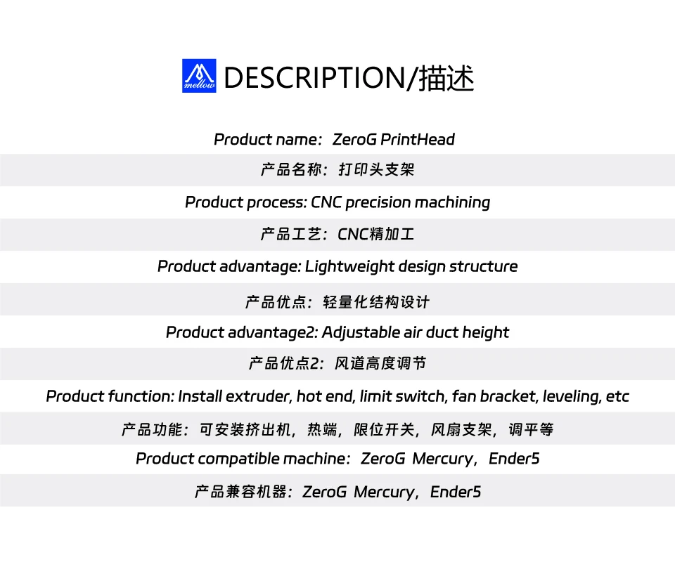 Mellow Alll Metal CNC ZeroG Printhead Bracket For Goliath Crazy Dragon Hotend Sherpa Extruder Mini Mercury Ender 5 S1 3D Printer