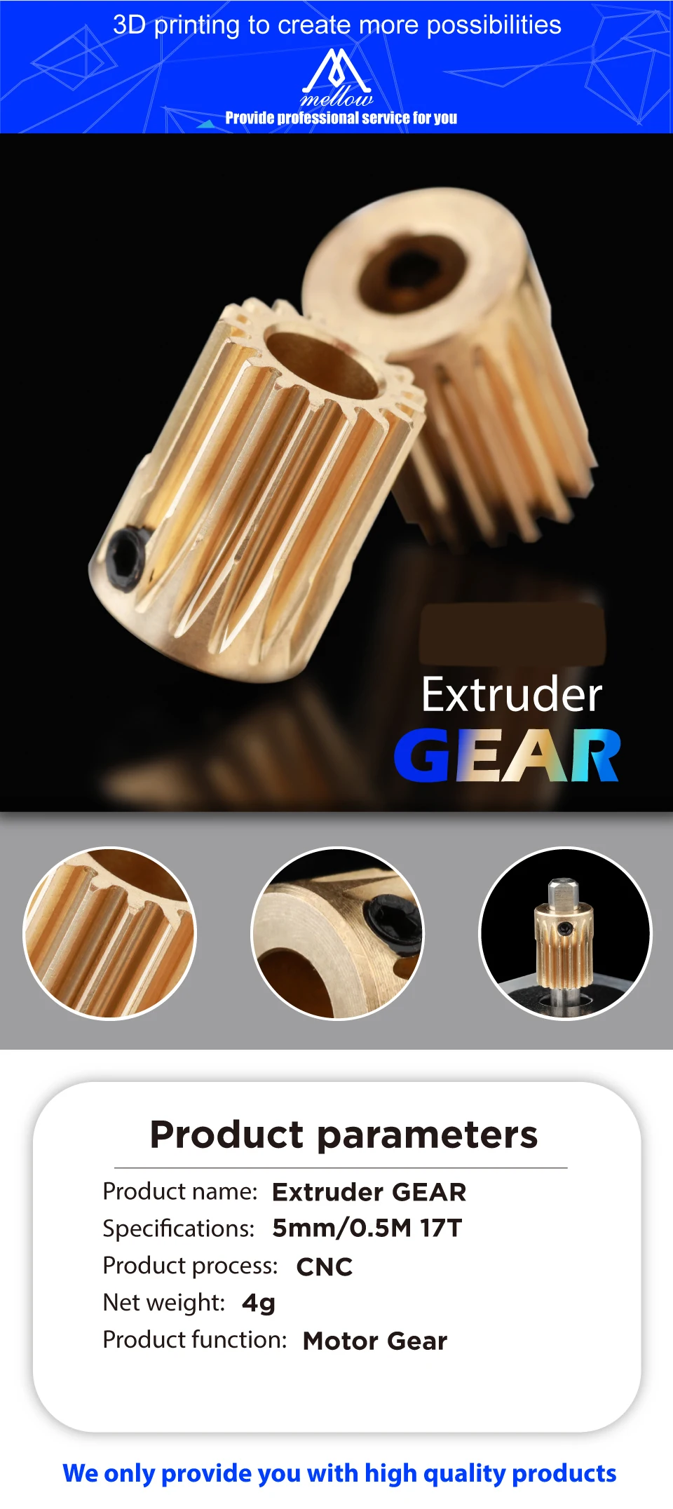Mellow Brass DDG Extruder Motor Gear 5mm/0.5M 17T For DDG Wind Aero Extrusion Wheel for 3D Printer Extruder