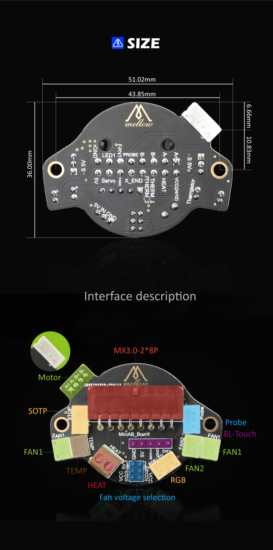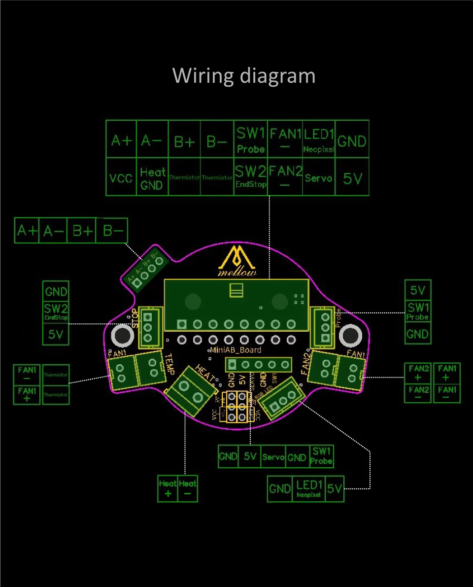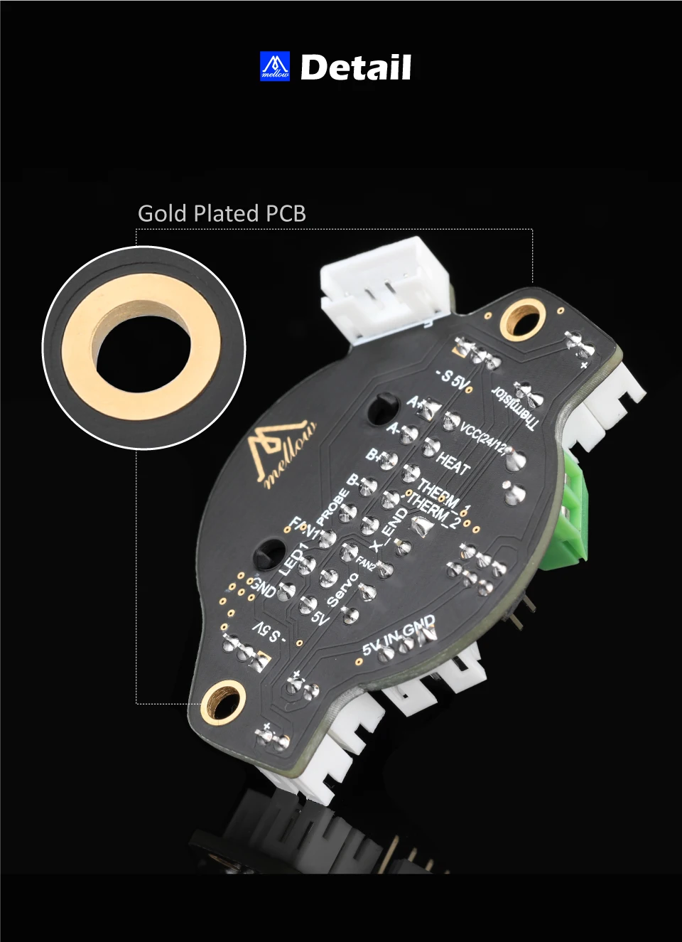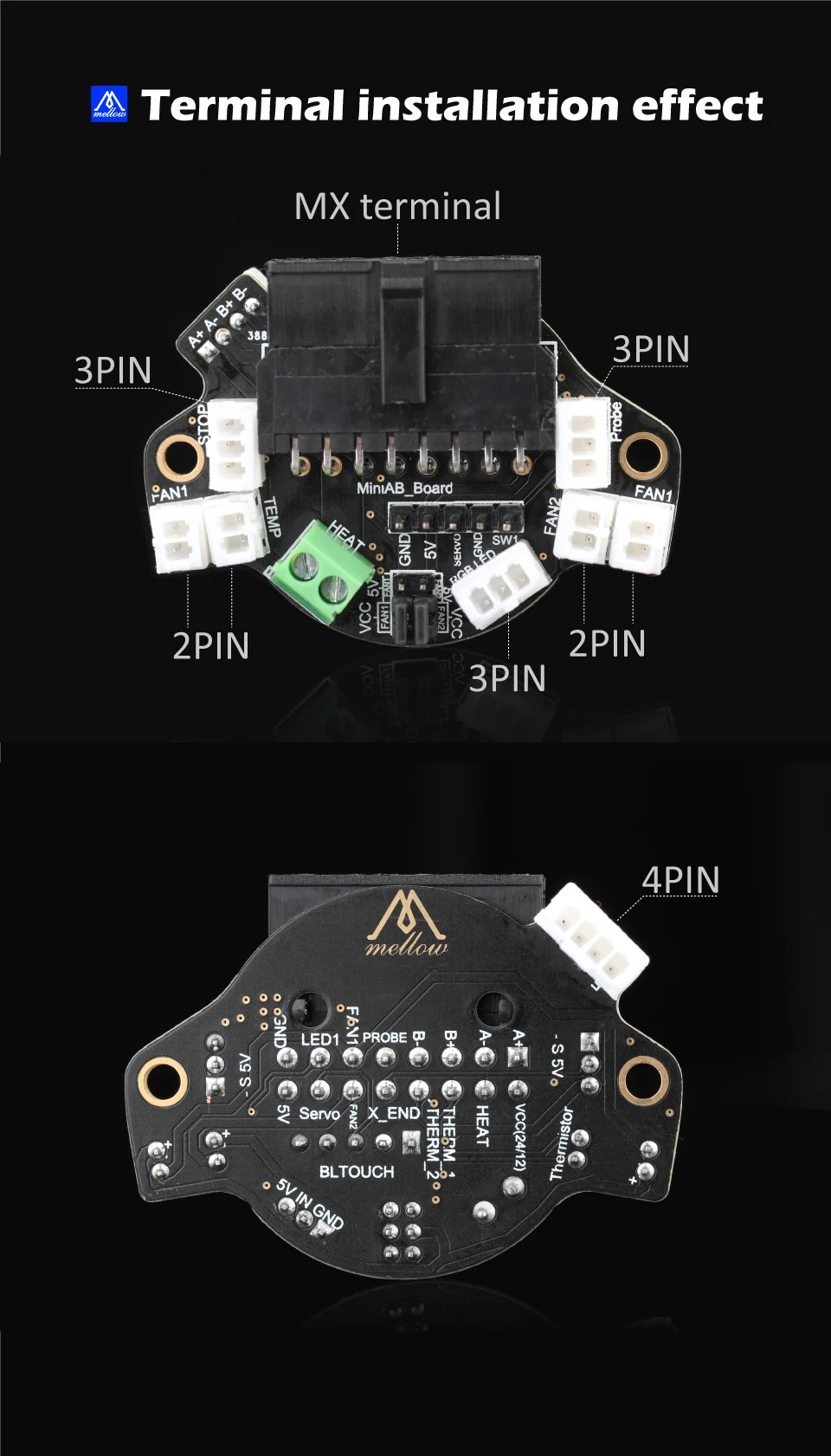 This is a simple tool head terminal board, you can connect all the wires of the hot end part to this board, and connect to the motherboard through a unified wire, it is more convenient when you need to replace the electronic parts of the hot end, for example, you need to replace The heating tube only needs to be operated at the hot end position, and it is more convenient to operate without changing the wires connected to the main board.
