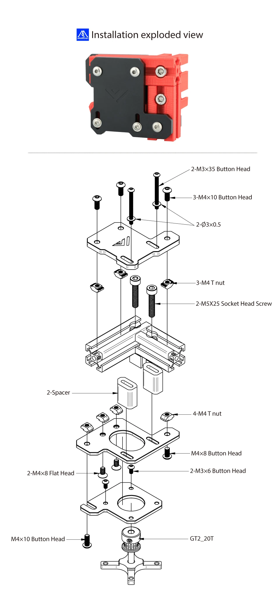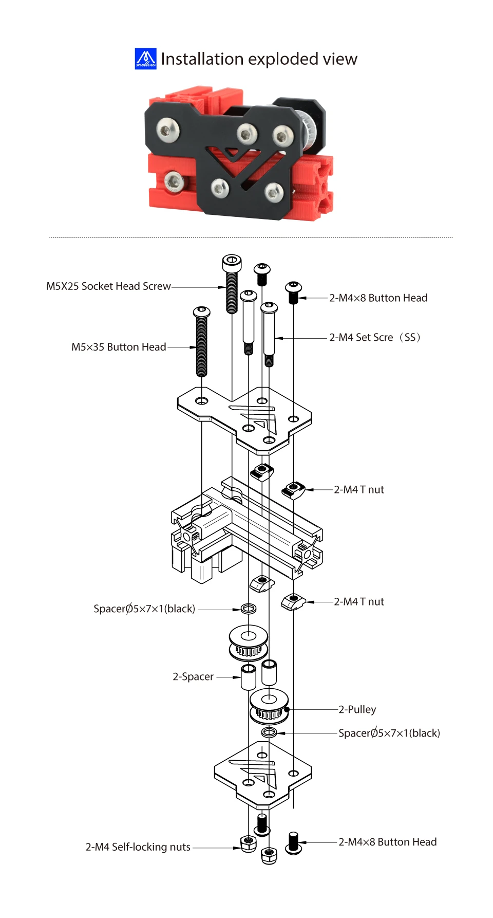 Mellow Pre-Assembled CNC VzBoT 330 Aluminum XY Mount Kit 5M Gates Belt Titanium Idler Screws For Ultra High Speed 3D Printer