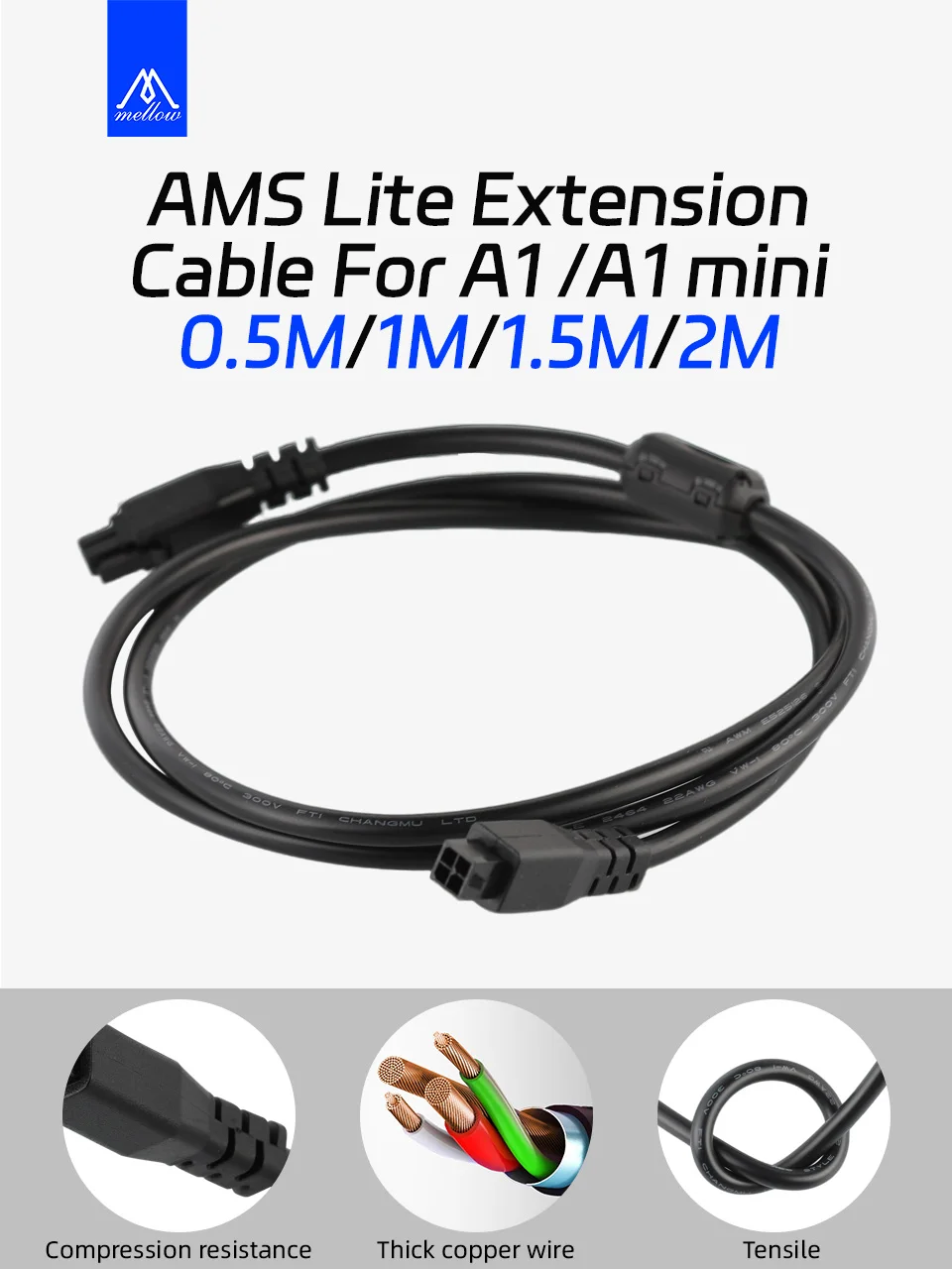 Enhance your setup with this robust extension cable designed for seamless connectivity between A1 series hosts and AMS Lite devices. Extend your power and data lines by 0.5/1/1.5/2 meter while ensuring superior durability and performance.