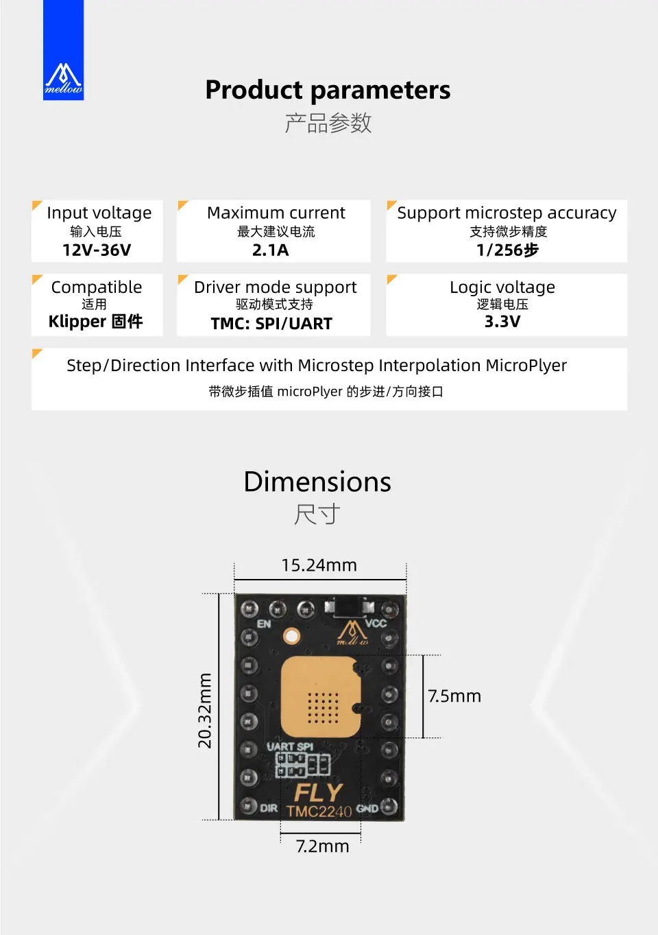 Mellow TMC2240 V1.0 Stepper Motor Driver SPI/UART Silent Driver 3D Printer Parts For Voron VzBoT Prusa Ender3 Replace TMC2209