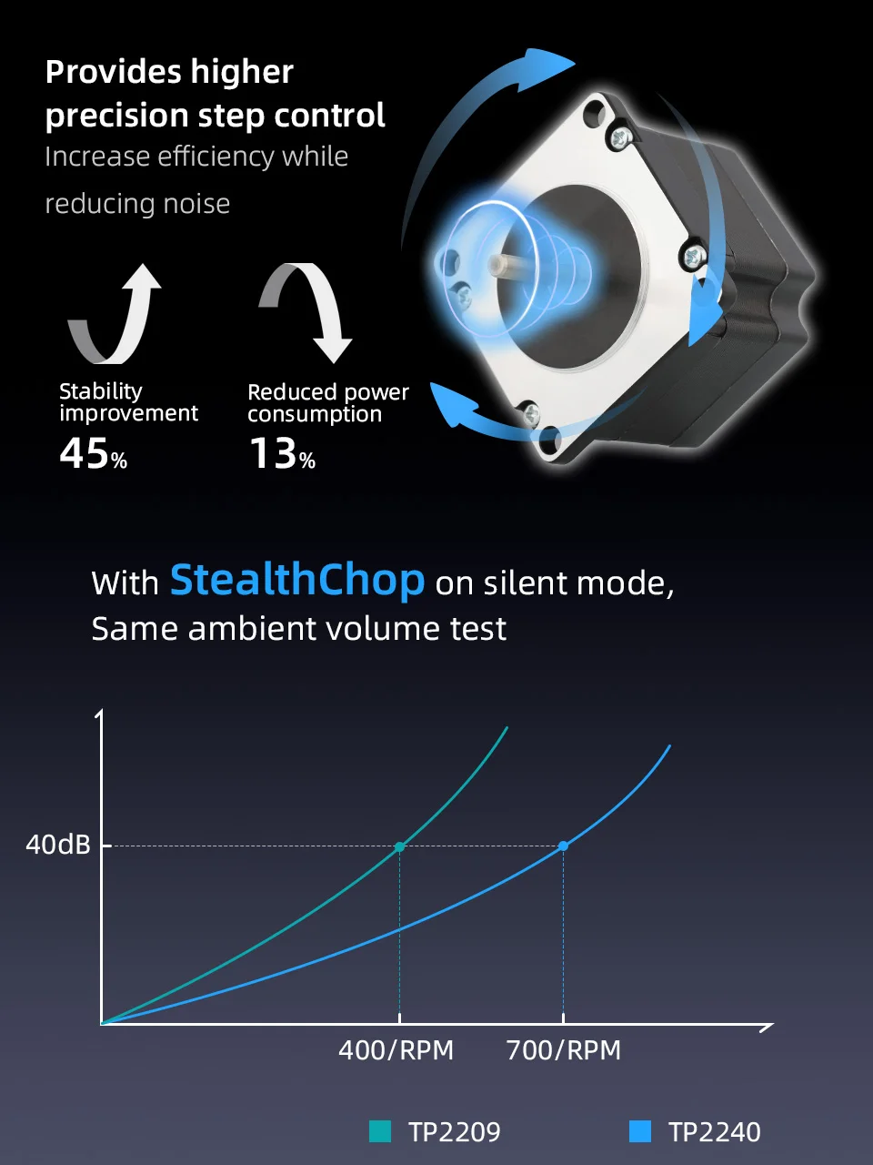 The TMC2240 is capable of supporting a widerrange of motor types, while the TMC2209 issuitable for general stepper motors and supportsrelatively few motor types