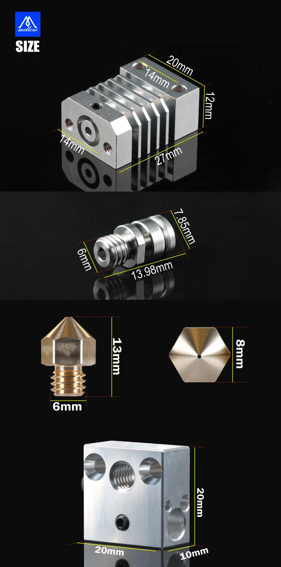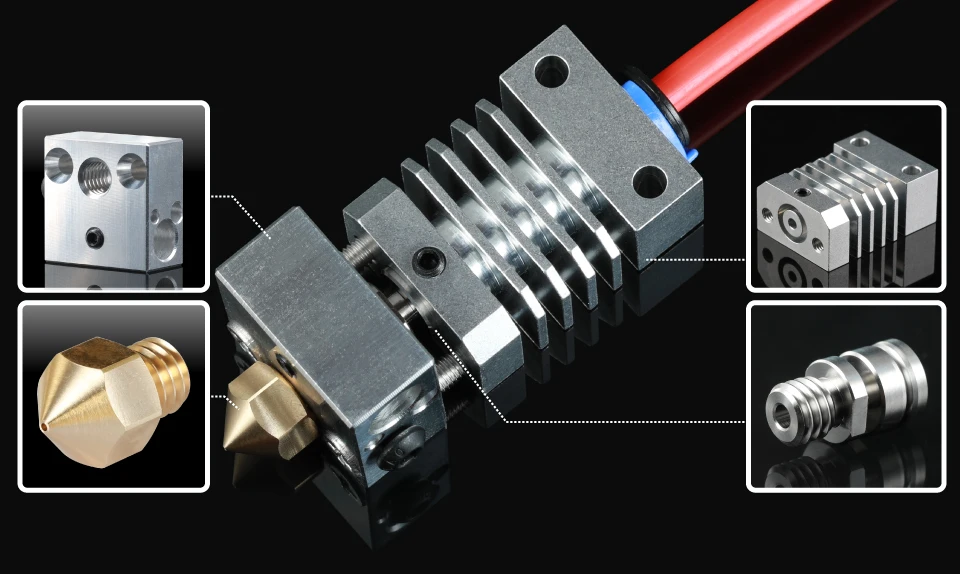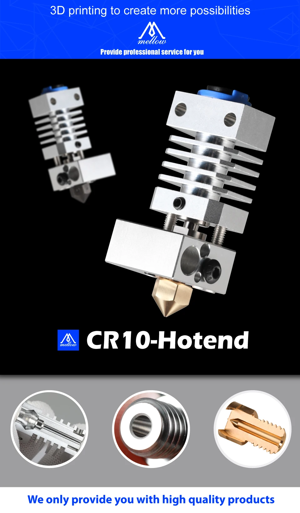 This is a drop in All Metal Conversion kit for CR-10 printers. It requires absolutely zero modification to your printer to install. Our uniquely designed cooling block eliminates need for a thermal tube. By not having separate thermal tube inside cooling block, it allows for faster heat dissipation. Thermal heat break is made from Titanium Alloy to provide excellent thermal isolation between heater and cooling block. Titanium is extremely strong material and offers almost 3x lower thermal conductivity than stainless steel, creating more defined meltzone.